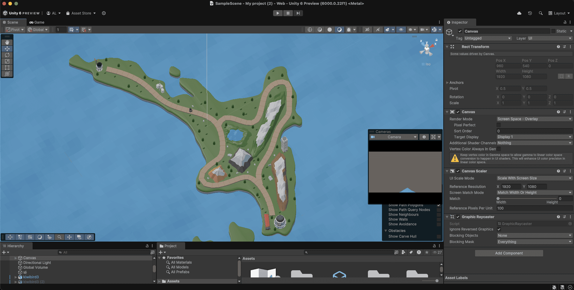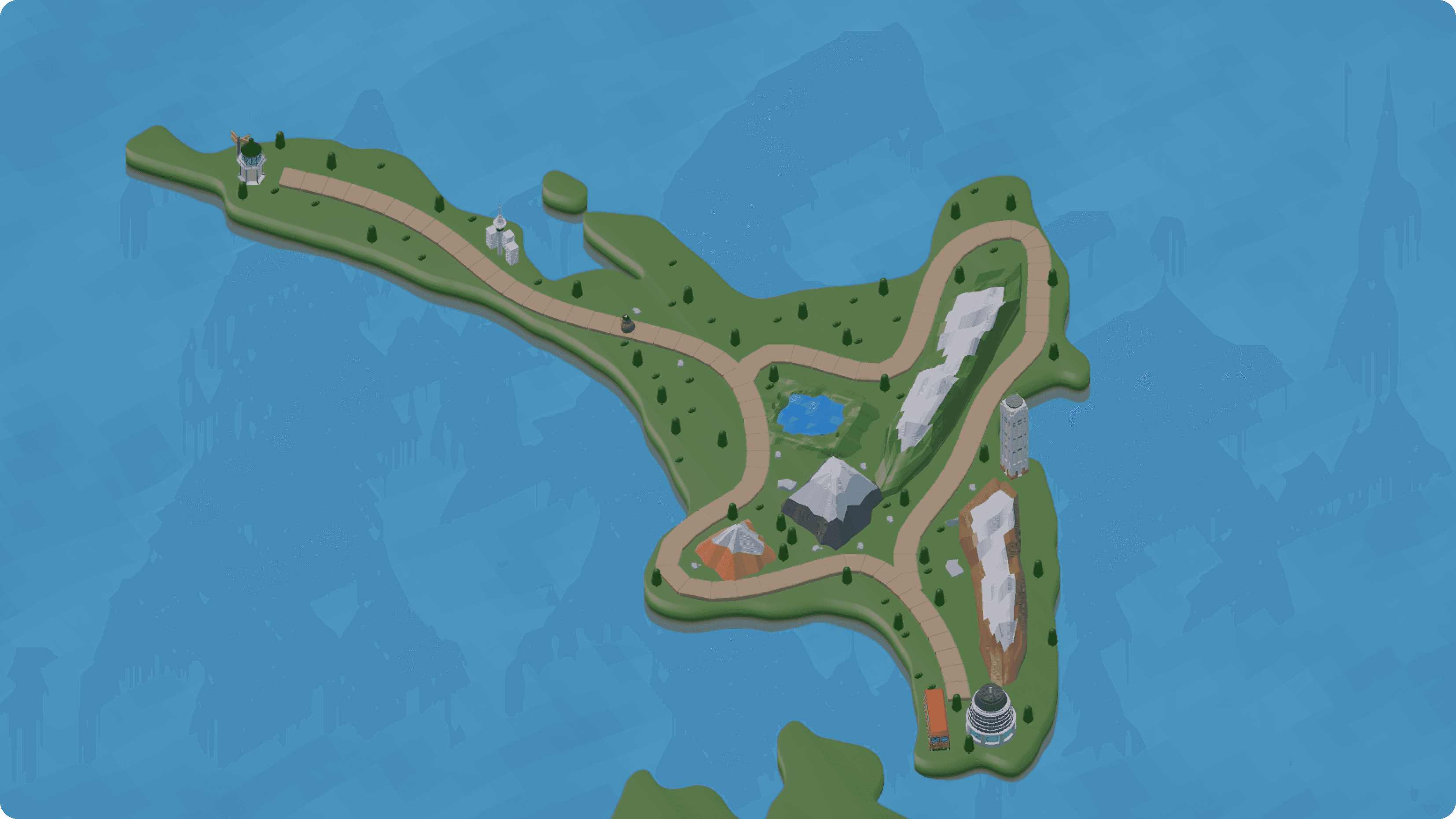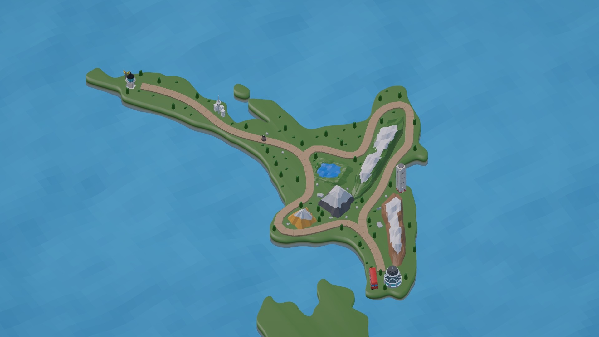 The project was developed through multiple stages. Notably, this included 3D modeling of the map and the creation of various geographical features. Based on the main 3D models, key elements such as roads, grass, and mountains were designed to represent the unique landscape of New Zealand. In the final stage, UI screens that appear in response to user interactions with the 3D models were also implemented.