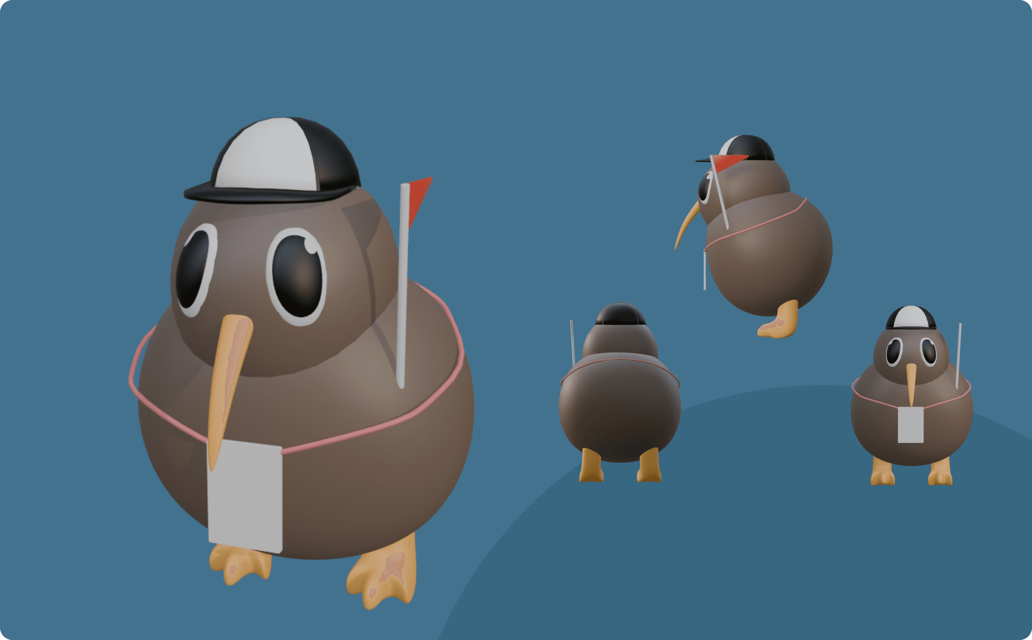 In this interactive 3D website design project, character design was regarded as an essential element—not only to ensure user-friendly access to the website, but also to effectively convey the spirit of New Zealand. Accordingly, the kiwi bird, an iconic symbol of New Zealand, was chosen as the website’s main character and named Wiki. Wiki was designed with the concept of serving as a guardian and guide, reflecting the essence of New Zealand.
